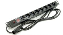 Основные характеристики: Устройство разработано для работы с входным напряжением 220 В (50 Гц), имея номинальный ток 16A. Подключение осуществляется с помощью кабеля питания длиной 2.5 метра с вилкой IEC 60320 C20, что обеспечивает надежное соединение с сетью. В дополнение к этому, блок оснащен выключателем с подсветкой для удобного управления, а также ограничителем перенапряжений с термоавтоматом, что защищает подключенное оборудование от возможных скачков напряжения.