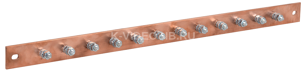 Шина заземления, 483х25x3 мм, медь ШМТ М1, 12 точек подключения.. Аксессуары для организации заземления внутри шкафов - различные шины заземления и заземляющие проводники - используются для обеспечения заземления устанавливаемого оборудования на единую шину и организацию общего централизованного заземления всего шкафа или стойки, что напрямую влияет на безопасность жизнедеятельности и защиту от вероятности поражения током обслуживающего персонала, снижает риск возникновения возгорания в шкафах и уничтожения дорогостоящего оборудования.