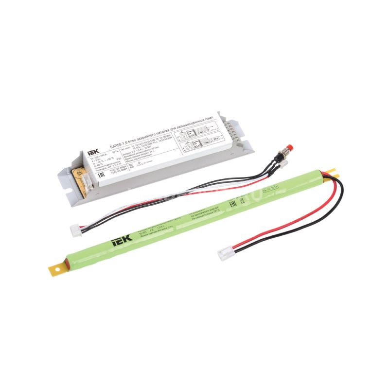 Блок аварийного питания БАП58-1,0 для ЛЛ/КЛЛ IEK предназначен для обеспечения бесперебойного освещения помещений светильниками с люминесцентными лампами в случае непредвиденного отключения сети 230В. БАП встраивается в светильник или в выносной бокс управления люминесцентными лампами серии Т5 и Т8 мощностью до 58Вт, с лампами КЛЛ серии PL-C мощностью до 36 Вт и обеспечивает работу в аварийном режиме одной лампы в светильнике. Блок аварийного питания IEK состоит из электронного пускорегулирующего аппарата (конвертера), герметичной никель-металл-гидридной аккумуляторной батареи, светодиодного индикатора наличия сети и подзарядки аккумулятора, кнопки "ТЕСТ".