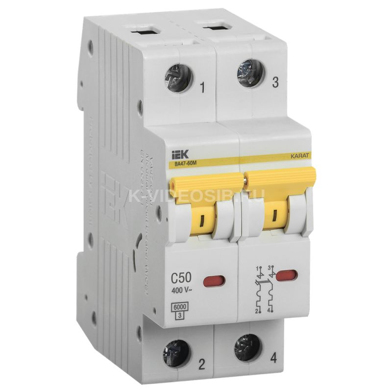 KARAT Автоматический выключатель ВА47-60M 2P C 50А 6кА IEK MVA31-2-050-C.