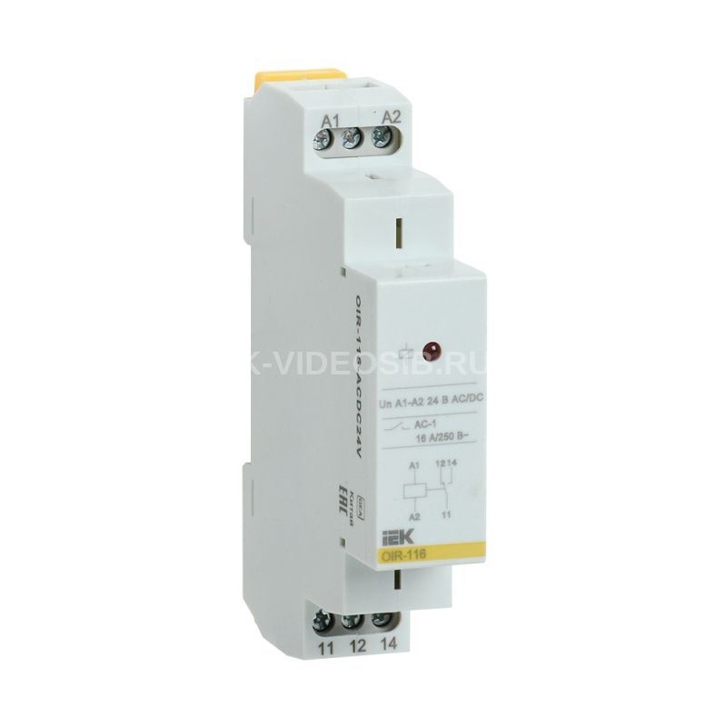 IEK OIR-116-ACDC24V предназначено для гальванической развязки и передачи команд управления исполнительным элементам, между силовыми цепями и цепями управления. Одна контактная группа, с коммутационной возможностью до 16А. Номинальное напряжение катушки реле 24В AC/DC.