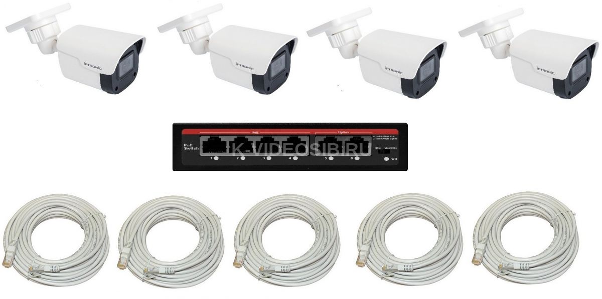 Технические характеристики IPTRONIC Готовый уличный комплект из 4 камер видеонаблюдения для ПВЗ ECO IVIDEON