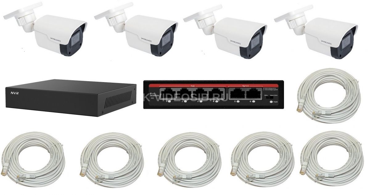 IPTRONIC Готовый уличный комплект видеонаблюдения для дачи на 4 IP-камеры ECO IVIDEON