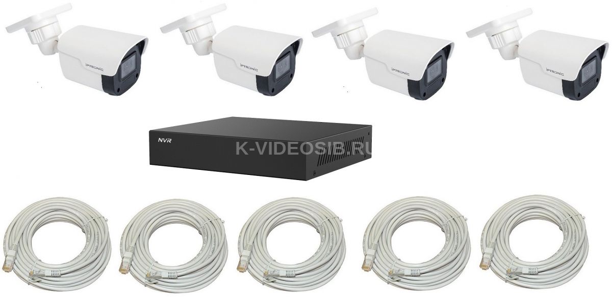 IPTRONIC Готовый уличный комплект видеонаблюдения для дома на 4 IP-камеры ECO IVIDEON