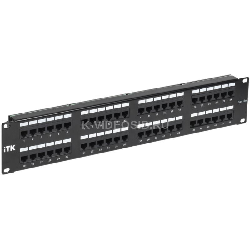 ITK 2U патч-панель кат.5E UTP 48 портов IEK PP48-2UC5EU-D05 с кабельным органайзером является важнейшей частью любой СКС и IT-инфраструктуры здания и сооружения с большим количеством информационных розеток и терминальных портов конечных пользователей, которые необходимо коммутировать на порты активного сетевого оборудования, размещенного в серверных и распределительных узлах.