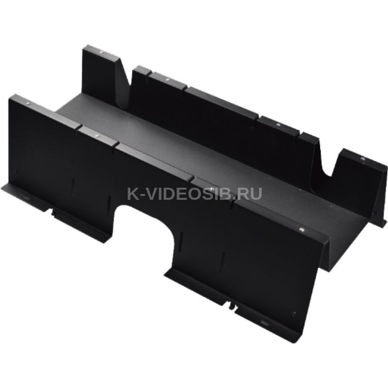 Лоток крепится в отверстия на крыше шкафа без использования инструментов и может быть установлен на любом расстоянии по глубине шкафа.