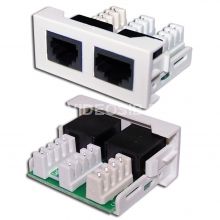 Лицевая панель с встроенными модулями категории 5e UTP RJ-45 (8P8C) и RJ-12 (6P4C) предназначена для организации двухпортового рабочего места неэкранированных слаботочных сетей.