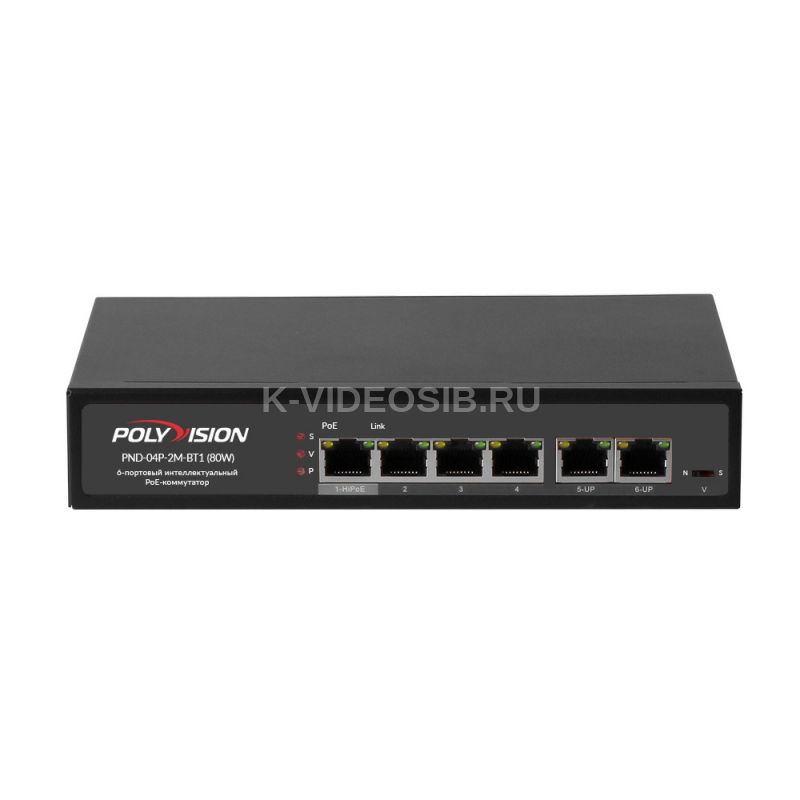 6-портовый интеллектуальный PoE-коммутатор, 4 PoE порта (IEEE 802.3af/at), до30 Вт на порт, бюджет PoE 80Вт, дальность передачи питания до 250м, 4 режима работы (AI VLAN, AI Extend, AI Power, AI QoS).