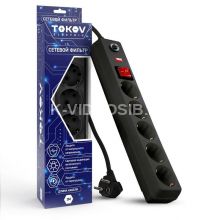 Удлинитель с сетевым фильтром 5х3м с заземл. с выкл. 16А с защ. от скачков напр. и перегрузок 3х1 черн. TOKOV ELECTRIC TKE-C05-SF5-3-ZV