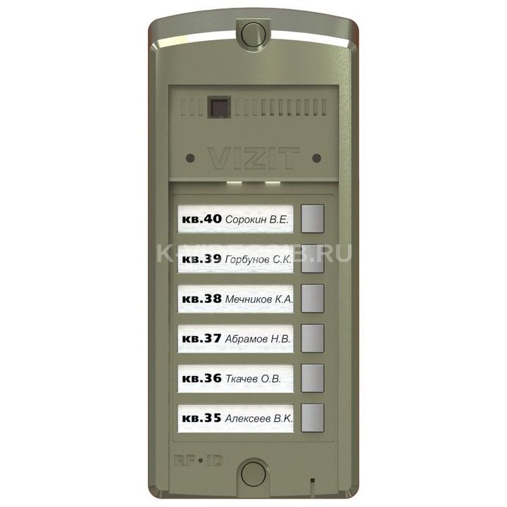 VIZIT BS-306-6 - кнопочная панель используется в комплекте с блоком вызова БВД-306(CP, FCP)-2(4,6) и предназначена для вызова абонентов. Подсветка кнопок вызова и именных табличек. Корпус кнопочной панели выполнен из ударопрочного, стойкого к атмосферным воздействиям пластика "поликарбонат". Особенности BS-306-6