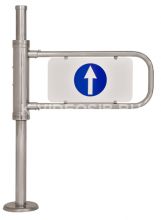 Калитка двухсторонняя, ее дуги могут открываться в обе стороны – на вход и на выход. На пластиковой вставке двухсторонних калиток с обеих сторон изображены стрелки. Стойка калитки изготовлена из хромированной стали.