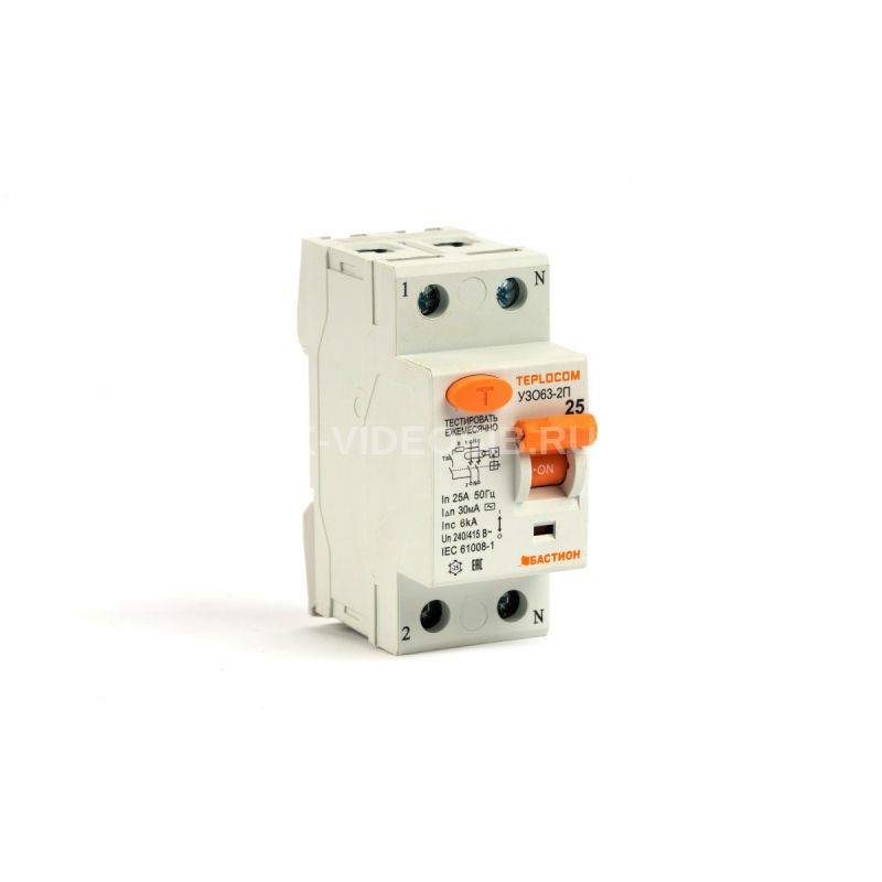 Описание СКАТ Устройство Защитного Отключения 6kA 30mA 2П 25А тип АС 240/415В TEPLOCOM (8425)
