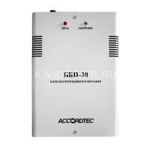 AccordTec ББП-30 (исп. 1) блок бесперебойного питания в корпусе, предназначенном для установки АКБ емкостью 7А*ч, предназначен для бесперебойного питания устройств и приборов охранно-пожарной сигнализации, активных датчиков, систем видеонаблюдения, электромагнитных и электромеханических замков, а также другой аппаратуры с напряжением питания 12V. AccordTec ББП-30 (исп. 1) обладает рядом особенностей, а именно: