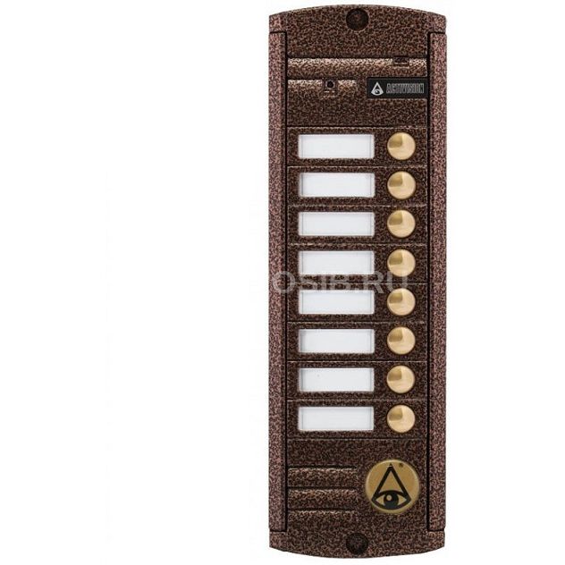 Activision AVP-458(PAL) Proxy (медь) - антивандальная 4-проводная вызывная панель цветного видеодомофона со встроенным Proxy считывателем. Видеопанель идет в исполнении накладного типа, рассчитана на 8 абонентов. Для работы в составе 4-х проводного индивидуального видеодомофона, является его составной частью.
