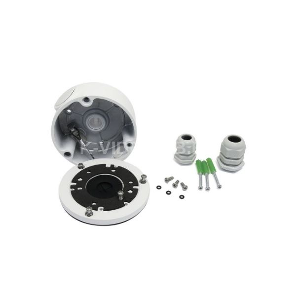 Amatek AV-BB3F - металлическая распределительная коробка для купольных видеокамер. Цвет: белый. Размеры: Ø 138 х 54 мм. Материал: металл. Вес 660 гр. 2 герметичных ввода для кабеля разного диаметра. Крепление камеры на кронштейн винтами (4шт в комплекте). Совместим с купольными камерами серий AC-IDV и AC-HDV с размерами корпуса Ø120x98 мм.