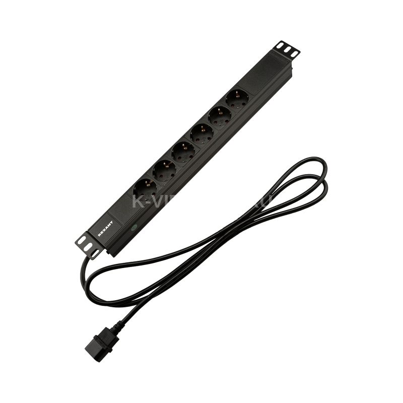 Описание Блок распределения питания для 19" шкафов, горизонтальный, 6 розеток СЕЕ 7/4, 10A, без выкл, алюм корп, шнур 2м, вилка C14 REXANT (04-0301-1)