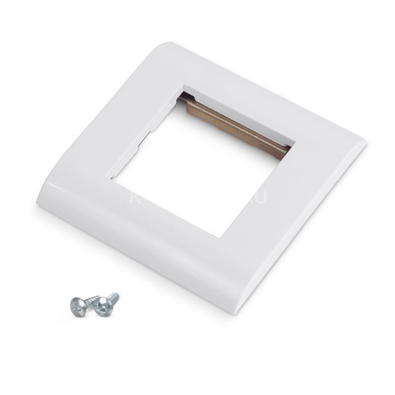 Лицевая панель предназначена для установки розеточных модулей размерностью 45х45 мм в настенные коробки или скрытно в стену. Состоит из металлического суппорта и пластиковой лицевой рамки. Суппорт фиксируется с помощью винтов, лицевая рамка – при помощи защелок.