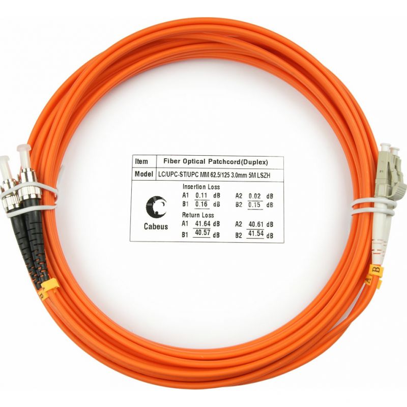 Cabeus FOP-62-LC-ST-5m Шнур оптический duplex LC-ST 62,5/125 mm 5м LSZH