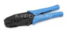 Устройство обжимное для экранированных RJ-45 (8р8с) с хвостовиком, профессиональное. Устройство для зачистки и разделки витой пары, 110 тип. Обжим модульных разъемов формата RJ-45. Материал изделия: среднеуглеродистая сталь. Покрытие: черное хромирование. Обжимные губки: сплав цинка. Рукоятки: ПВХ. Особенности конструкции: Обжим контактов проводников и зажим экранируемого хвостовика коннектора. Храповый механизм для оптимизации качества обжима контактов. Компактная и надежная конструкция