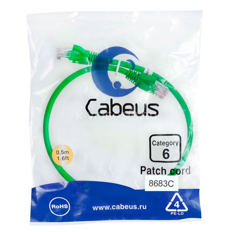 Описание Cabeus PC-UTP-RJ45-Cat.6-0.5m-GN
