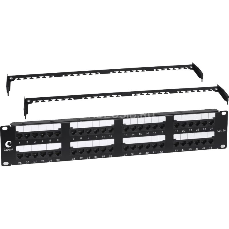 Неэкранированная патч-панель Cabeus выполнена в 19” формате и предназначена для установки в телекоммуникационные шкафы и стойки. Соответствует характеристикам категории 5е.