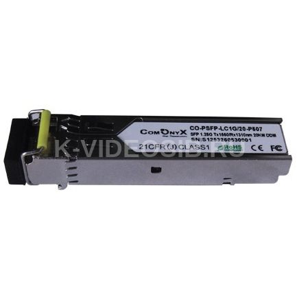ComOnyX CO-PSFP-LC1G/20-P507 - оптический трансивер SFP WDM, разъем LC, дальность передачи от 0 до 20км, скорость передачи данных 1.25Гб/с, длина волны Tx 1550нм, тип волокна SMF, температурный диапазон -40°C ~ +85°C, питание 3.3Вольт, поддержка DDM.
