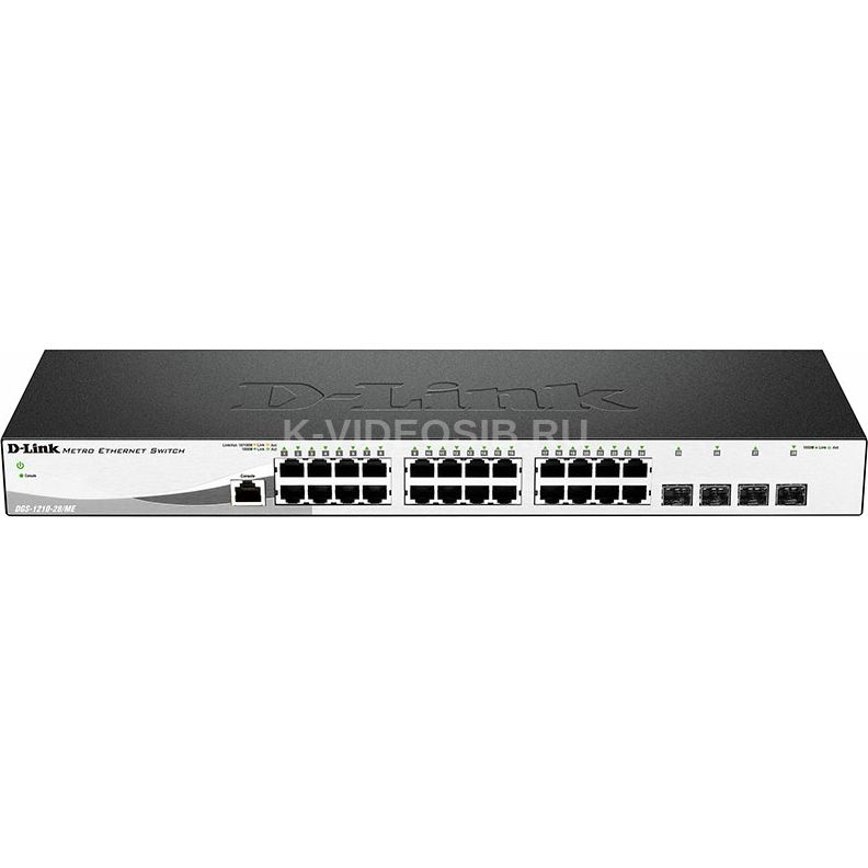 Управляемый коммутатор (24 порта 10/100/1000 Мбит/сек+ 4 x SFP). Коммутатор DGS-1210-28/ME является идеальным решением для применения в сетях Metro Ethernet. Данный коммутатор оснащен 24 портами 10/100/1000Base-T для подключения по витой паре, а также 4 SFP-портами, применяемыми для организации подключения к высокоскоростной магистрали. Защита от статического электричества 6 кВ обеспечивает устойчивость к скачкам напряжения, а полный набор функций безопасности и аутентификации защищает сеть от внутренних и внешних угроз. DGS-1210-28/ME поддерживает Auto Voice VLAN, обеспечивая максимальный приоритет для «голосового» трафика.