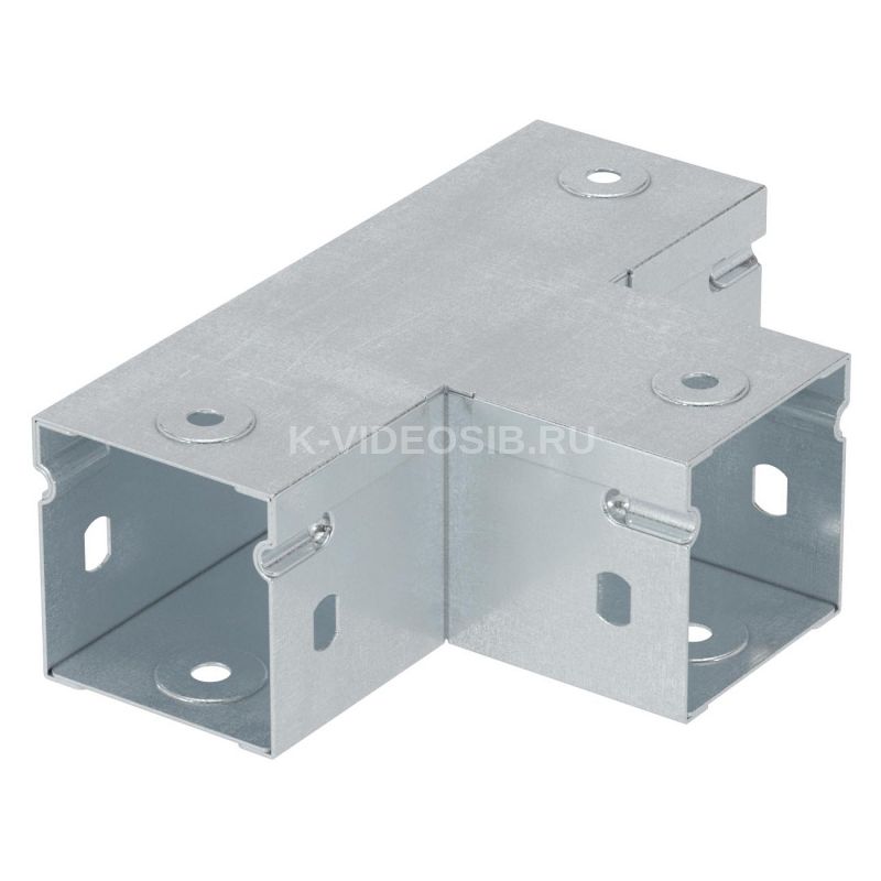 Данный аксессуар имеет Т-образную форму и применяется для организации поворотов и ответвлений в горизонтальной плоскости. Он используется в особенных случаях, когда, например, лоток используется в качестве настенного кабельного канала, или при обвязке оборудования. Конструкция элемента предотвращает возможное повреждение кабеля.Исполнение – "сталь, оцинкованная по методу Сендзимира". Высота – 50 мм, ширина – 50 мм.