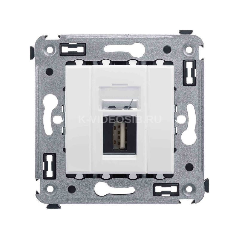 USB 2.0 розетка. Назначение: для монтажа в подрозеточные коробки глубиной не менее 45 мм (код 59301). Используется в качестве информационной розетки для передачи сигнала (подключение проекторов, мониторов и др.). 1 модуль. Цвет: "Белое облако". Производитель оставляет за собой право вносить во внешний вид изделия изменения, которые не влияют на его функционал, безопасность и надежность.