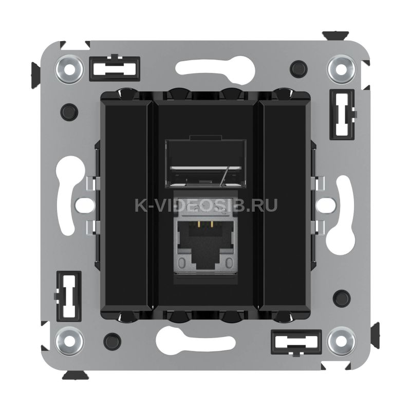 Компьютерная розетка одинарная экранированная используется для подключения компьютерной техники и соединения с патч-панелью. Компьютерная розетка предназначена для скрытого монтажа в стену, поставляется в комплекте с суппортом. Розетка RJ-45 категории 5e – это наиболее популярная на сегодняшний день модель. Она позволяет организовать сеть с частотой 125 МГц и скоростью до 1000 Мбит/с. Материал – металл, термопласт. Пластиковые детали устройства имеют оттенок "Черный квадрат".