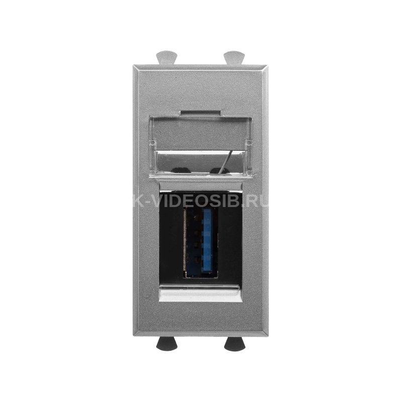 USB 3.0 розетка. Назначение: для монтажа в систему кабельных коробов "In-liner Front" и систему организации рабочих мест "Sotto" при помощи рамок-суппортов и каркасов "Avanti" (код 4400912 и т.д.). Используется в качестве информационной розетки для передачи сигнала (подключение проекторов, мониторов и др.). 1 модуль. Цвет: "Закаленная сталь".