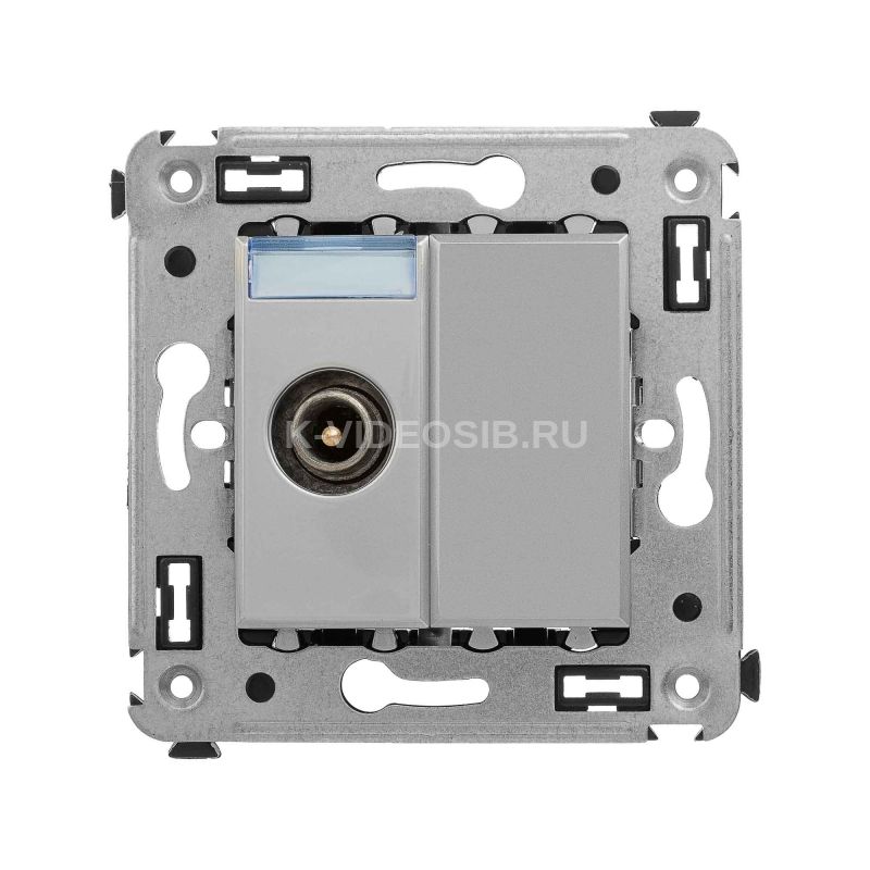 Розетка TV проходная в стену. Назначение: для монтажа в подрозеточные коробки глубиной не менее 45 мм (код 59301); подключение телевизионного кабеля к телевизору. Характеристики: винтовые зажимы; диапазон рабочих частот 4–2400 МГц; затухание <1 дБ. Кол-во модулей: 2. Цвет: "Закаленная сталь"