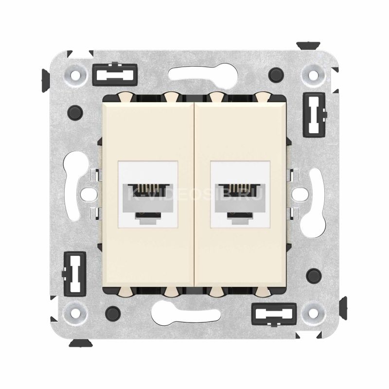 Телефонная розетка RJ-12 двойная без шторки используется для коммутации линий телефонной связи в патч-панелях или для связи телефонных аппаратов с розеткой. Предназначена для скрытого монтажа в стену, поставляется в комплекте с суппортом. Материал – металл, термопласт. Пластиковые детали электроустановочного изделия имеют цвет "Ванильная дымка".