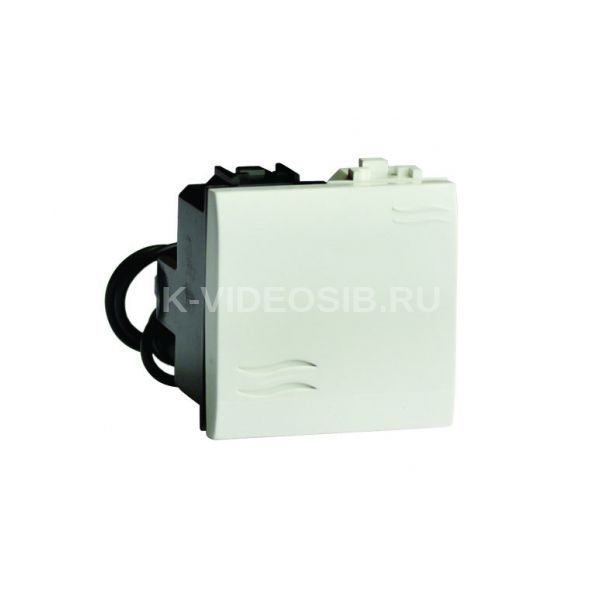 Выключатель типа кнопка с подсветкой. Назначение: кратковременное включение звонка, диммера или освещения (работающего в качестве сигнально-оповестительного). Характеристики: номинальный ток − 16 А; номинальное напряжение − 250 B. Кол-во модулей: 2. Цвет: белый