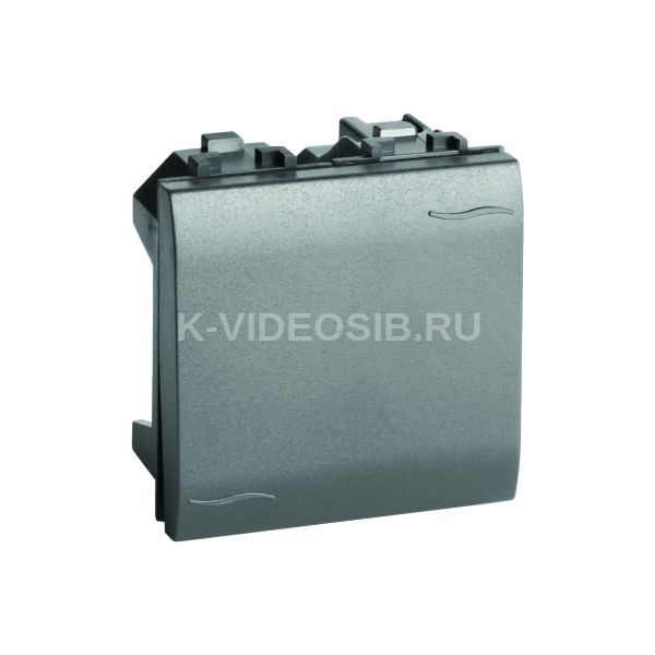 Переключатель (проходной выключатель). Назначение: включение/выключение освещения. Переключатели устанавливаются по 2 шт. на одну цепь для управления освещением из 2-х точек в коридорах, проходах, гостиничных номерах (у входной двери, изголовья кровати), проходных комнатах и т. д. Характеристики: номинальный ток − 16 А; номинальное напряжение − 250 B. Кол-во модулей: 2. Цвет: черный