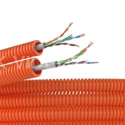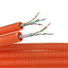 Описание ДКС 7EU91625 Электротруба ПНД гибкая гофрированная д. 16 мм, цвет оранжевый, с кабелем витая пара 5EU/UTP нг(А)-HF, 25 м
