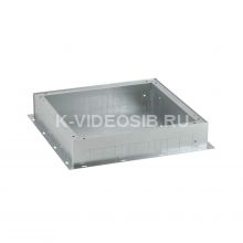 Опалубка для лючков металлическая. Назначение: организация рабочих мест с помощью лючка; организация мест распайки (в качестве распределительной коробки). Характеристики: минимальная высота стяжки 100 мм; высота монтажа регулируется с помощью 4-х специальных винтов, расположенных в углах по периметру опалубки; для монтажа специальный инструмент не требуется; перед установкой крышки, предназначенной для монтажа лючка (код 88212), или сплошной металлической крышки (код 88235), временная крышка (стальная, оцинкованная, идет в комплекте с опалубкой) удаляется сразу после заливки; с 4-х сторон на боковых стенках находится перфорация для ввода стальных (неперфорированных) лотков ДКС с крышками и перегородками серии "S5 Combitech" (типоразмером 50х50, 100х50, 150х50, 200х50, 300х50 или 400х50 мм); с 4-х сторон на боковые стенки можно установить пластины, в каждой из 6-ти отверстий диаметром 50 мм, с кабельными вводами (код 88236); винт заземления расположен внутри опалубки, на дне. Комплект поставки: временная крышка из оцинкованной стали 0,8 мм; металлическая пластина для фиксации кабельных вводов; 6 кабельных вводов диаметром 50 мм для ввода труб в опалубку; метизы.