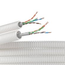 Описание ДКС 8EU81650HF Электротруба из ПЛЛ не содержит галогенов, гибкая гофрированна д. 16 мм, цвет белый, с кабелем витая пара 5EU/UTP нг(А)-HF, 50 м
