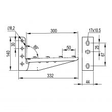 Консоль серии ML для проволочного лотка с шириной основания 300 мм. Предназначена для безвинтового монтажа кабельной трассы на основе системы проволочных лотков "F5 Combitech" с максимально допустимой нагрузкой 120 кг. Возможно крепление к стене или к профилям PSM и PSL болтами М8х60 и гайками М8. Высота консоли - 140 мм. Толщина стали - 2 мм.