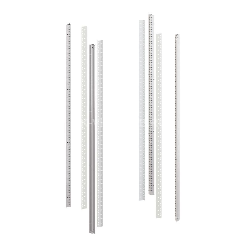Вертикальные стойки являются основными элементами силового каркаса напольного 19" IT CQE наряду с дном и крышей. Конструкция профиля стоек имеет 6 ребер жесткости. Собранный корпус выдерживает распределенную нагрузку до 1500 кг. Стойки имеют перфорацию с шагом 25 мм. Комплектация - 4 шт. Монтажные аксессуары в комплект не входят. Высота - 1800 мм. Материал - сталь толщиной 1,5 мм. Цвет - серый, RAL 7035. Стойки устанавливаются по углам комплекта "крыша – основание", присоединяются к ним с помощью резьбовых соединений, образуя несущий каркас. Установка вертикальных стоек строго перпендикулярно плоскостям основания и крыши обеспечивается конструктивными элементами, выполненными совместно с крышей и основанием. В комплекте поставки идут четыре L-образных 19" профиля 38U высотой, теперь их не надо заказывать отдельно.