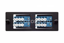 Планка Eurolan 38M-S2-4L-03-04BL предназначена для установки четырех оптических адаптеров типа Quadro LC, разработанных для работы с одномодовым волокном стандарта OS2, отличающихся наклонной формой контактных площадок.