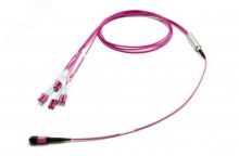 - Вход: MPO(12) (Male) — стандартный модульный разъем, обеспечивающий подключение 12 волокон одновременно. - Выход: LC(12) — разъем типа Lucent Connector, применяемый для индивидуального подключения каждого волокна.