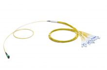 Разветвительная кабельная сборка типа "гидра" предназначена для соединения одного многожильного оптического кабеля MPO с несколькими отдельными одномодовыми волокнами LC-типа. Эта конструкция позволяет эффективно распределять сигнал между разными устройствами в сетях передачи данных высокой плотности. Основные характеристики сборки: - Тип разъема: Вход — MPO (24 волокна, male); Выходы — LC (24 порта) - Вынос каждого отдельного порта: 0,5 метра - Оптоволокно: Одномодовое (OS2), используется для дальних расстояний связи Применение: Такая разветвительная кабельная сборка применяется преимущественно в высокоскоростных телекоммуникационных системах, центрах обработки данных, сетях CATV и корпоративных локальных сетях, обеспечивая быструю передачу большого объема информации одновременно нескольким устройствам. Таким образом, эта сборка представляет собой эффективный инструмент для подключения множества устройств к единственному порту многомодового интерфейса, позволяя минимизировать количество кабелей и упростив монтаж системы в условиях ограниченного пространства.