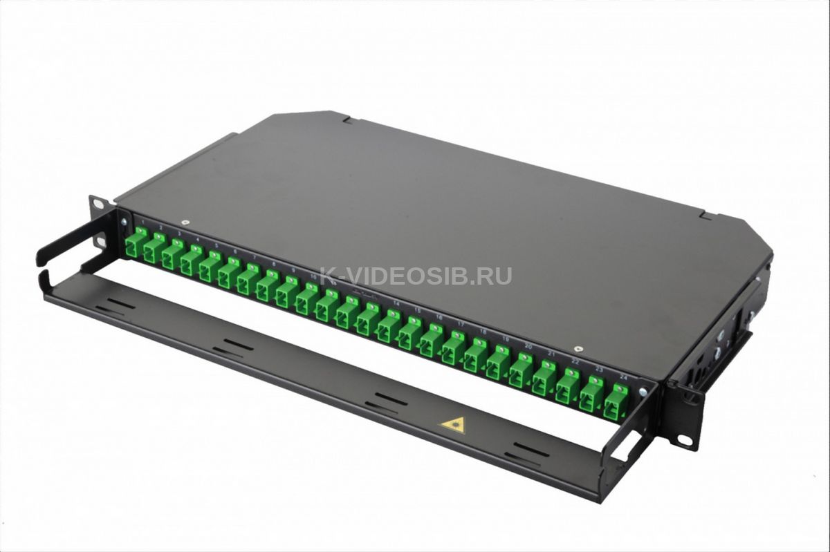 Оптическая панель Eurolan 47C-24-S2-SC-24-11BL-A 19'' 1U фиксированная, корпус на 24 адаптера, 24 симплекс SC/APC адаптера, OS2, цвет черый RAL 9005, со съёмной крышкой и маркировкой портов. Панели оптические 19” фиксированной конфигурации и слотовые обеспечивают ввод, размещение, крепление и хранение запасов станционных и линейных волоконнооптических кабелей; концевую заделку, соединение, переключение линейных и станционных кабелей с оптическими волокнами в сети связи общего пользования, в технологических сетях связи и сетях связи специального назначения; подключение контрольно-измерительной аппаратуры; маркировку линейных и станционных цепей.