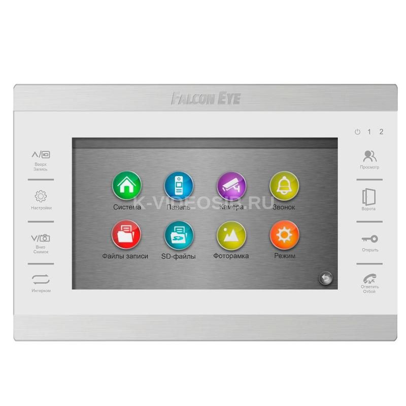 Falcon Eye FE-70 ATLAS HD (White) - Видеодомофон с сигналом высокого разрешения (AHD / CVI / TVI / CVBS) до 2МП. AHD/CVI/TVI (аналоговый сигнал высокой четкости) - новое слово в домофонии. Домофон может принимать как сигнал высокой четкости разрешением до 1920х1080, так и аналоговый сигнал, причем делает это в гибридном режиме: одна панель может быть AHD, а вторая аналоговая. Домофон оснащен широкоформатным экраном 7 дюймов. Поддерживает подключение 2-х вызывных панелей и 2-х камер видеонаблюдения (как AHD/CVI/TVI, так и аналоговых). Так же есть возможность подключения до 6-ти мониторов по интеркому. Еще одной отличительной особенностью домофона является наличие встроенного реле для управления контроллером. Так же домофон имеет ряд дополнительных функций: запись по детекции движения с каждого канала, запись по внешнему тревожному датчику на каналах для камер, запись фото или видео при вызове с вызывной панели. Возможность проигрывания mp3 мелодий, так же мелодию можно установить в качестве мелодии вызова. Есть функция фоторамки и возможность оставить голосовое сообщение вашим гостям. Особенности