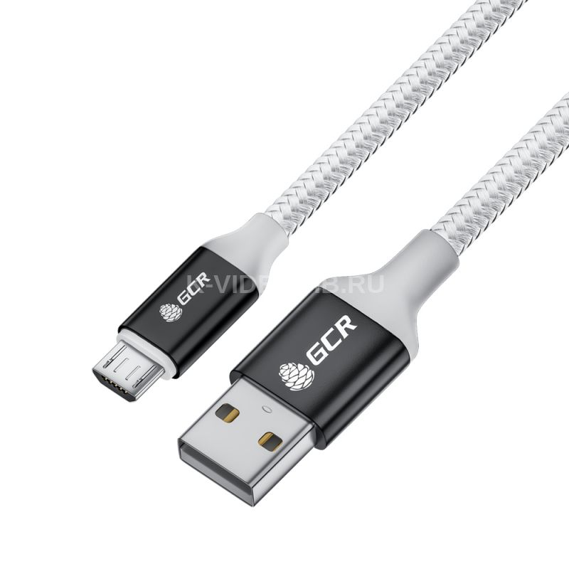 Описание GCR QC Кабель 0.5m MicroUSB, быстрая зарядка, белый нейлон, AL корпус черный, белый ПВХ, 28/24 AWG GCR-53578