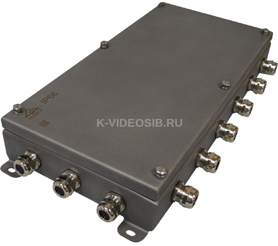 Коробки оснащаются DIN-рейкой для крепления клемм. На крышке и корпусе располагаются заземляющие зажимы «РЕ». В боковых стенках установлены кабельные вводы из нержавеющей стали, обеспечивающие степень защиты не ниже IP66.