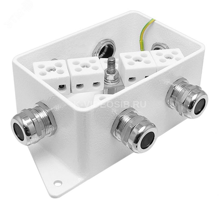 Корпус коробки целиком изготовлен из стали 2,5-3 мм. Имеет двойную защиту от коррозии (гальваническое покрытие и покраска). Крышка прижимается к корпусу через силиконовую прокладку. Винт крепления крышки снабжен уплотняющей тарельчатой шайбой с фторопластовым покрытием. Внутри корпуса коробки установлены керамические клеммные колодки, обеспечивающие соединение "под винт", и клемма заземления. В боковых стенках устанавливаются металлические кабельные вводы. Крепление коробки к элементам конструкций рекомендуется осуществлять на приварные пластины с применением гаек и винтов или с помощью саморезов и металлических дюбелей.