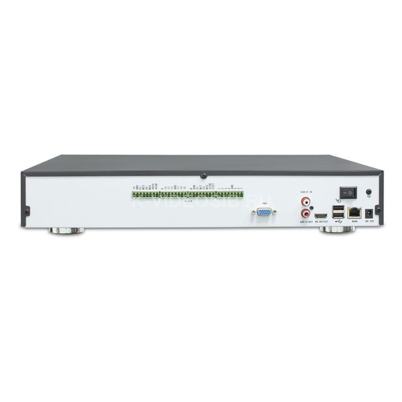 - Видеорегистратор поддерживает 36 IP видеокамер с разрешением до 8 Мп.