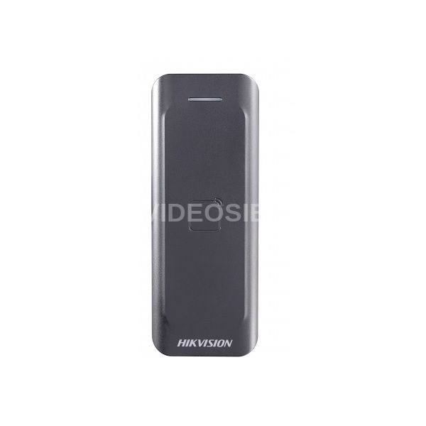 Hikvision DS-K1802M - считыватель Mifare карт. Частота считывания 13,56 МГц. Дальность считывания: ≥50 мм. Поддержка протокола Wiegand (W26/W34). Питание DC12В; 2Вт. Рабочие условия -40 °C...+70°C. Защита IP65. Размер 115.9x43.3x17мм. Материал корпуса пластик.